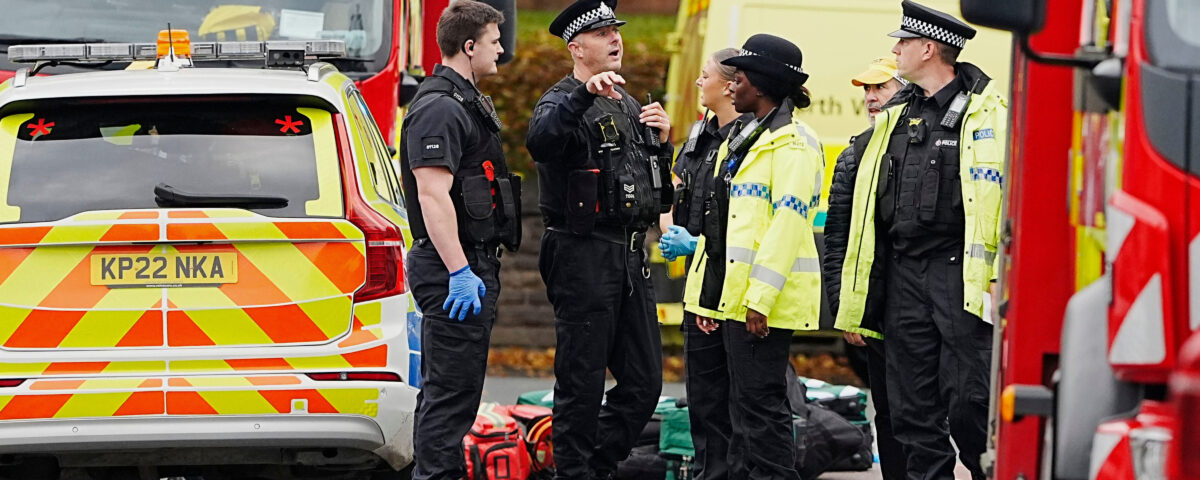 Policía y servicios de emergencia en las inmediaciones de la sinagoga de Mánchester que fue atacada por un terrorista simpatizante de Daesh el día 2 de octubre. Imagen: ABC News.