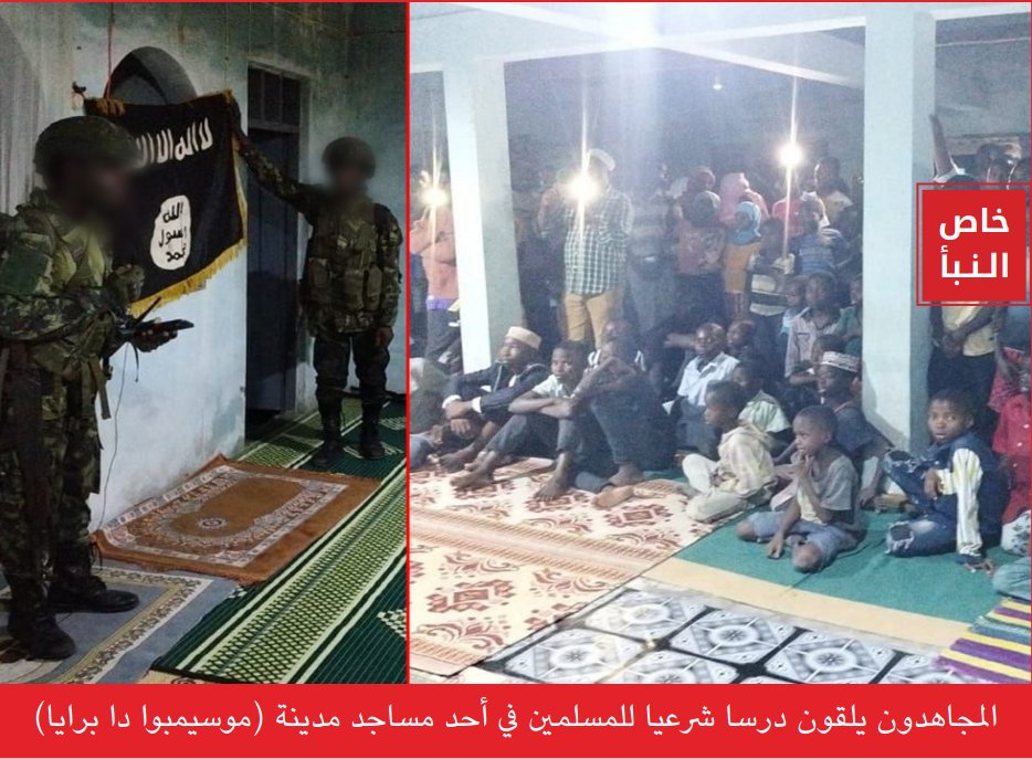 Imágenes difundidas por el Estado Islámico en Mozambique en las que terroristas del grupo tratan de captar en mezquitas a nuevos miembros, incluyendo niños. Fuente: redes sociales.
